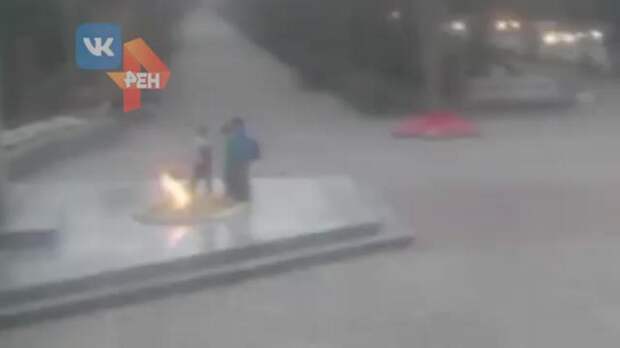 Ранее в соцсетях появился видеоролик, на котором видно, что около Вечного огня находились трое школьников. В какой-то момент один из подростков начал лить воду из бутылки на огонь.