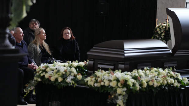 На траурное мероприятие пришли родные и близкие народного артиста, его коллеги и многочисленные поклонники. Десятки людей несут цветы к Большому залу Троекуровского кладбища.
