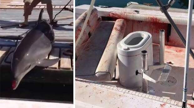 В Сети появилось шокирующее видео, на котором запечатлен дельфин, устроивший кровавое месиво на лодке.