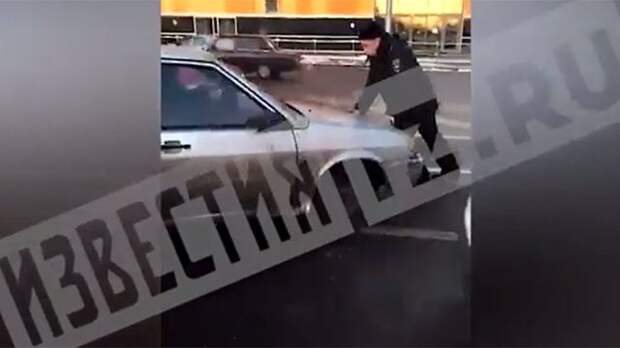 Еще некоторое время водитель вез правоохранителя на капоте.
