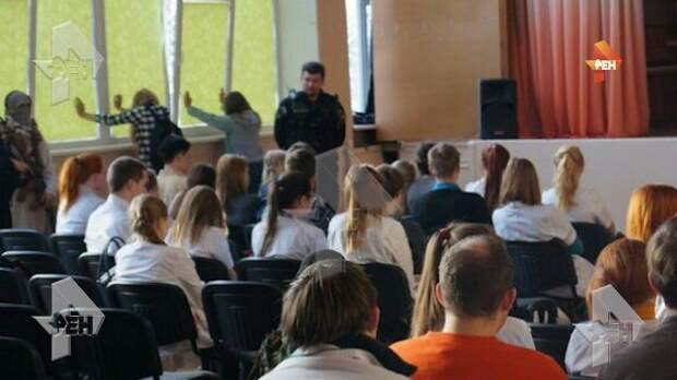 В распоряжении РЕН ТВ оказалось несколько фото, сделанных на скандальных учениях по безопасности в тихвинском медколледже под Петербургом. Часть студентов играла роли боевиков, захвативших учеников в актовом зале.