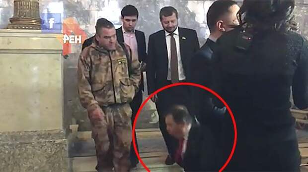 На записи видно, как радикал упал, а затем выругался, сказав "Бл***".
