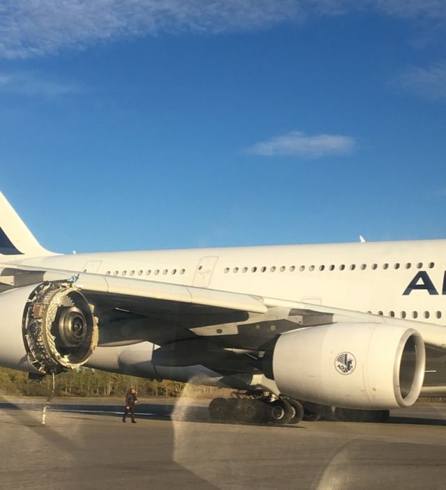 Напомним, ЧП в небе над Атлантикой произошло 30 сентября. У самолета A380 авиакомпании Air France, летевшего из Парижа в Лос-Анджелес, в небе над Атлантикой взорвался один из двигателей, и экипаж принял решение экстренно садиться в канадском городе Гус-Бей.
