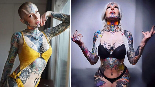 Девушка прославилась в Сети благодаря своей необычной внешности. Большая часть ее тела покрыта тату, а также у модели есть вживленные под кожу силиконовые шипы и множество проколов.