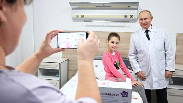 Российский президент Владимир Путин во время посещения Национального медицинского исследовательского центра детской гематологии, онкологии и иммунологии имени Дмитрия Рогачева в Москве пообщался с детьми – пациентами медучреждения.