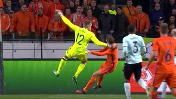 Голландский нападающий Винсент Янссен получил серьезную травму во время матча сборных Нидерландов и Бельгии. В ходе опасной атаки футболист столкнулся с вратарем противников. На кадрах ролика видно, что Симон Миньоле первым дотянулся до мяча, но влетел в оппонента локтем.