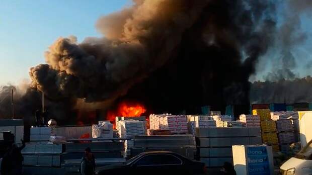Площадь возгорания на рынке "Мельница" на 41-м километре МКАД возросла до 1500 квадратных метров.