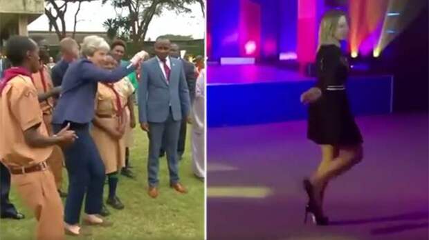 Официальный представитель МИД России Мария Захарова выложила на своей странице в Facebook видео, на котором сопоставляются записи с танцами — ее под "Калинку-Малинку" и премьер-министра Британии Терезы Мэй, пустившейся в пляс во время визита в Южную Африку.