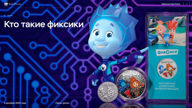А монеты по 25 рублей – с никелевым покрытием и из медно-никелевого сплава с цветным покрытием "Фиксики" серии "Российская (советская) мультипликация".В ЦБ напомнили, что российский мультипликационный сериал "Фиксики" появился в 2010 году. В нем рассказывается о маленьких человечках, которые живут внутри разных бытовых приборов и рассказывают об их устройстве.