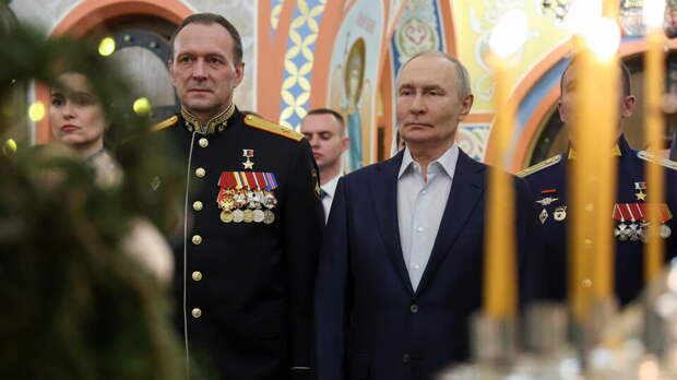 Ранее в этот день официальный представитель Кремля Дмитрий Песков рассказал, что президент России встречает Рождество Христово в одном из московских храмов вместе с военнослужащими и их семьями.