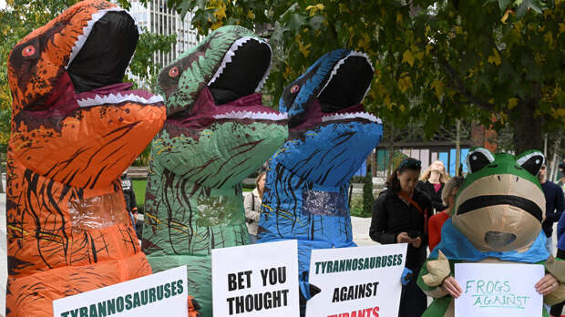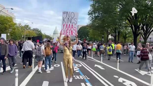 Были люди, которые расхаживали по улицам на ходулях, инопланетяне и толстяки в надувных костюмах, танцевавших на улице, и даже штурмовик из легендарных "Звездных войн".Один человек пришел на "антиправительственный" митинг в костюме осы, а другой решил протестовать в образе розового пони. Женщина в обтягивающем золотом костюме и маске предлагала заменить "королей" на "королев".