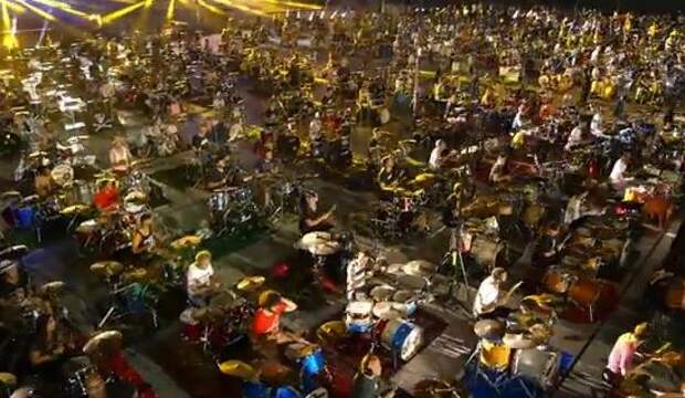 Казалось бы, такое шоу должно было стать настоящей фантасмагорией. Однако объем звука тысяч инструментов и сотен голосов, слитых воедино в экстазе исполнения, придали этой песне новую мощную энергию звучания.