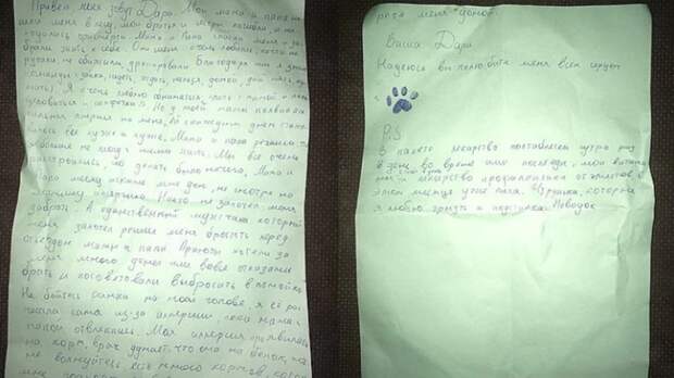 Также в послании говорится о том, что у хозяйки обнаружилась аллергия, тогда "мама и папа решили, что я больше не могу с ними жить". По словам авторов письма, они месяц тщетно искали для собаки новый дом, а приюты отказывались брать Дари, требуя деньги или предлагая "выбросить в помойку".