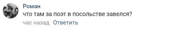 "Что там за поэт в посольстве завелся?" – пишет один из пользователей "Вконтакте".