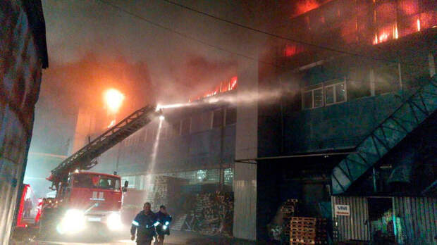 По предварительным данным, на складе хранился полистирол, что создает угрозу быстрого распространения огня.