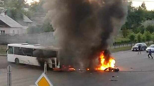 В результате столкновения от разлива топлива загорелись оба транспортных средства. Мотоциклист погиб.