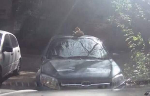 Кот заигрался на крыше автомобиля с антенной и расшатал ее. В какой-то момент новая игрушка пушистого сломалась, но, вероятнее всего, его это не так расстроило, как владельца авто.