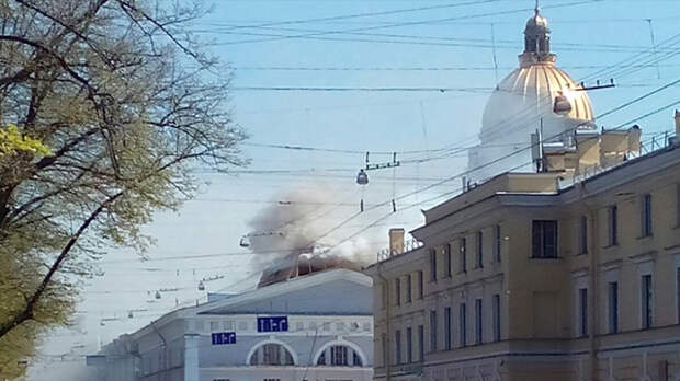 Пожар произошел в здании центрального выставочного зала "Манеж" на Исаакиевской площади в Санкт-Петербурге.