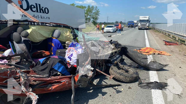 Легковушка после столкновения с грузовиком превратилась в груду металла. На снимках четко видно спортивную детскую форму.В настоящее время устанавливаются подробности и обстоятельства произошедшего.