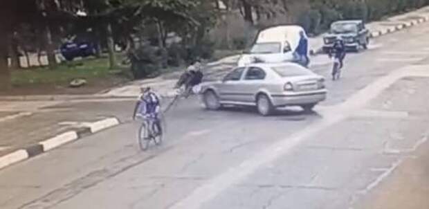 Водитель сбил группу велосипедистов в Алуште. Момент аварии зафиксировала камера видеонаблюдения.