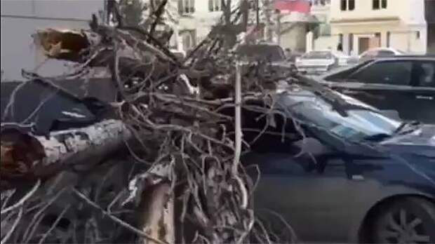 ЧП произошло в Ленинском районе Махачкалы, ветер также повалил около 10 деревьев, повредивших автомобили.