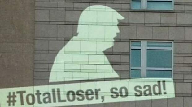 Кроме этого, активисты спроецировали изображение политика на фасад здания посольства США в немецкой столице, подписав его "#Total Loser, so sad".