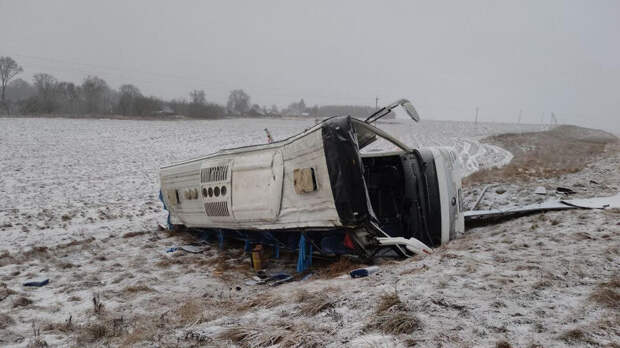 "43-летний водитель автобуса сообщением Москва – Брест, двигаясь со стороны Минска, по предварительной информации, не справился с управлением, съехал в правый по ходу движения кювет и опрокинулся", – говорится в публикации.