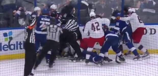 На 56-й минуте третьего периода россиянин толкнул соперника в борт, в результате чего произошла массовая драка между участниками двух команд.