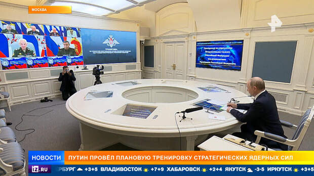 Перед тем, как начать работать, Владимир Путин снял часы. От этой тренировки ничего не должно отвлекать. В ней участвуют стратегические ядерные силы сдерживания. Сразу наземная, морская и авиационная составляющие.