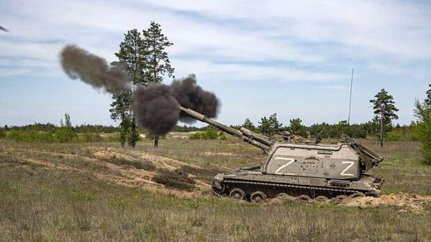Расчет САУ "Мста-С" Западной группировки войск на передовой в Луганской Народной Республике уничтожил наблюдательный пункт и пехоту ВСУ, которая была заняты инженерными работами.