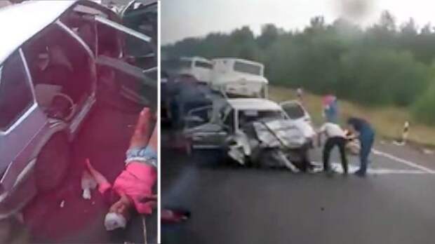 Очевидцы сняли видео с места смертельного ДТП в Оренбургской области.