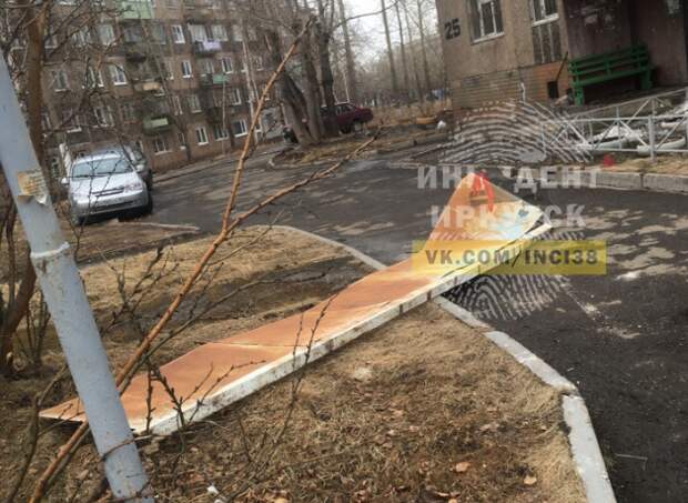 Сильный ветер сорвал с балкона в Братске парапет, который при падении едва не убил прохожих.