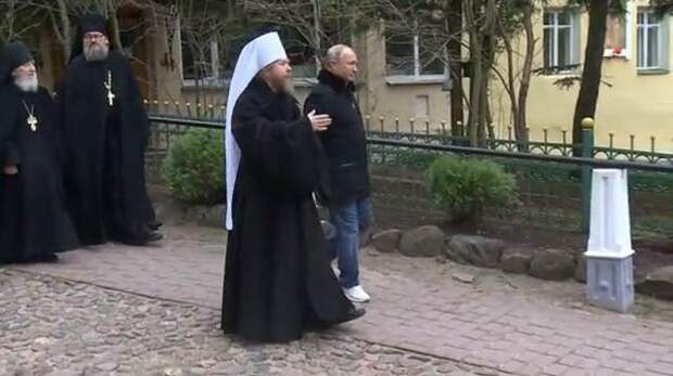Президента сопровождал наместник обители — митрополит Псковский и Порховский Тихон, которого называют духовником Путина.