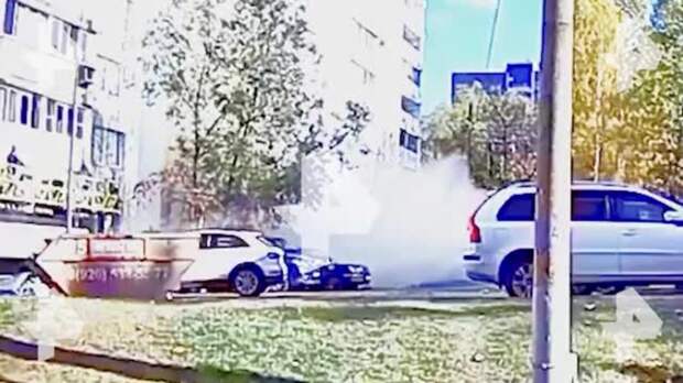 Камера наблюдения зафиксировала момент падения строительной люльки с дома в Капотне.
