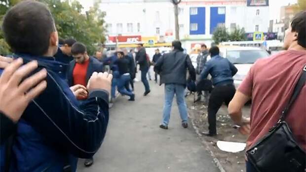 Потасовка продлилась несколько минут: в этом переполохе уже и неясно кто на чьей стороне, но вскоре драка останавливается так же быстро как начиналась.