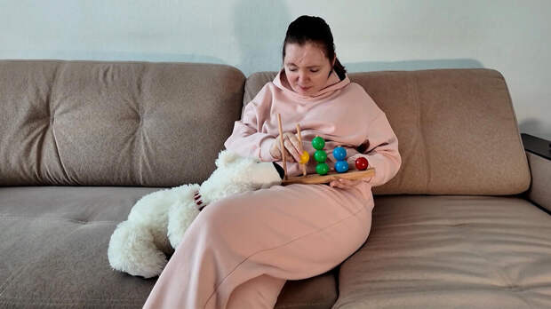 В свои 26 лет Анастасия не может без игрушек. Деревянные детали пирамиды помогают вернуть рукам чувствительность, а еще это тренировка для мозга, чтобы лучше запоминать цифры. Почти семь лет девушка учится жить заново: есть, глотать, ходить и говорить.
