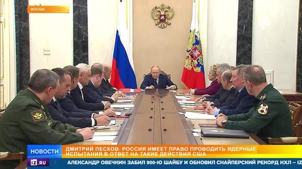"В 2023 году мной было сказано, что в случае, если Соединенные Штаты, либо другие государства-участники соответствующего договора проведут такие испытания, то и Россия тоже должна будет соответствующим образом предпринять адекватные ответные действия. В этой связи я поручаю сделать все для того, чтобы собрать дополнительную информацию по этому вопросу, провести ее анализ на площадке Совета безопасности и внести согласованные предложения о возможном начале работ по подготовке испытаний ядерного оружия", - заявил президент России Владимир Путин.