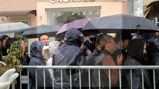 Несмотря на ненастную погоду, люди терпеливо стоят перед входом, чтобы отдать свои голоса.Кишинев сократил число избирательных участков в России и Приднестровье с целью помешать гражданам республики поддержать оппозиционные партии. При этом количество избирательных участков в странах Европы значительно выросло.