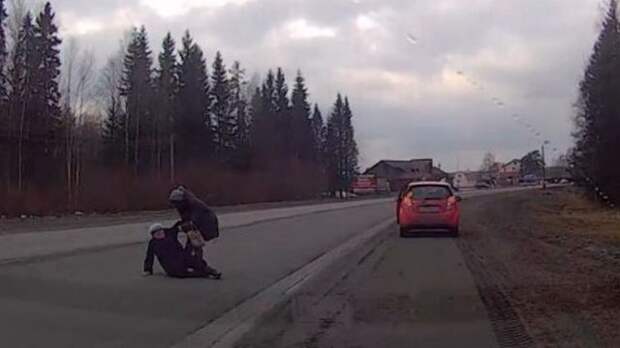 Четыре водителя остановились помочь старушке, которая упала посреди трассы. Накануне на трассе под Петрозаводском возле поселка Вилга пенсионерка переходила дорогу с оживленным движением и споткнулась. Однако проезжавшие мимо автомобили остановились для оказания помощи.
