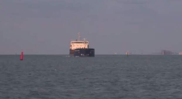 Сухогруз впервые прошел под железнодорожной аркой Крымского моста.