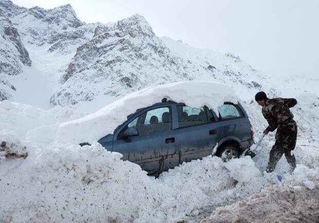 Причиной стала сильная метель. Из-за нее на дороге образовались огромные снежные заносы.