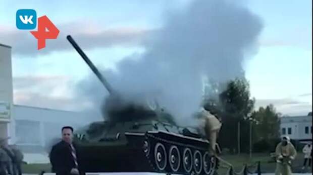 Танк-памятник загорелся в поселке Новосмолинский в Нижегородской области. В Сети очевидцы опубликовали видео с дымящимся объектом.