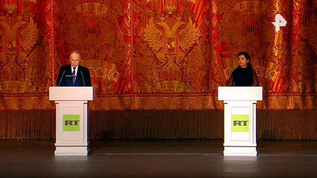 Ранее президент в Большом театре поприветствовал участников празднования 20-летия RT и назвал канал глобальным брендом, о котором знают сегодня во всем мире.