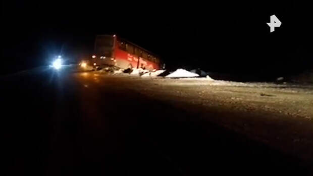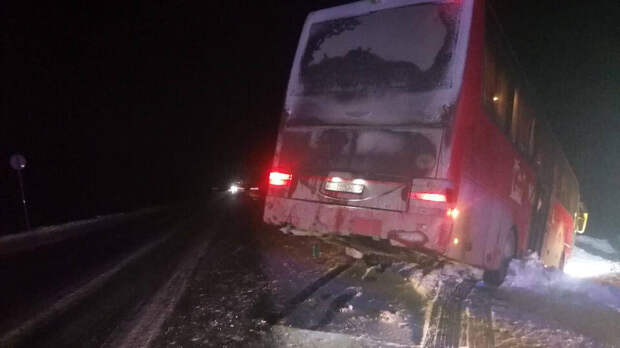 В автобусе находились 56 человек, из них 11 – дети. Никто из пассажиров не пострадал. Обстоятельства аварии выясняются.