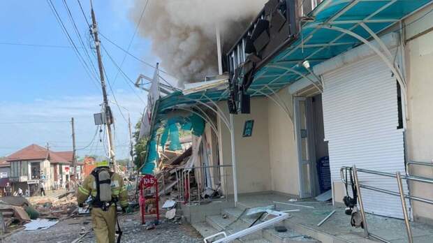 В МЧС Краснодарского края уточнили, что при взрыве произошло обрушение конструкции на площади около 100 квадратных метров. На 30 "квадратах" вспыхнул пожар.