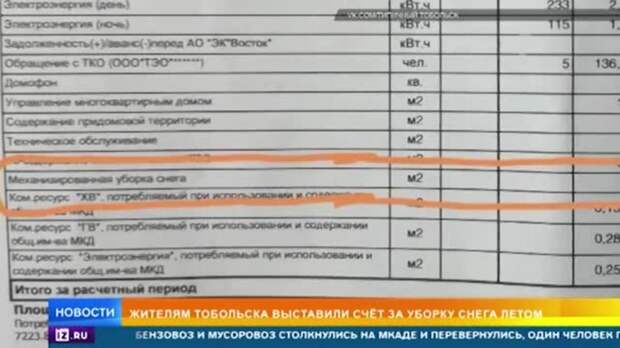 Свидетелями настоящего абсурда стали жители Тобольска. Они начали получать квитанции на оплату услуг ЖКХ, где выставлен счет за уборку снега в мае и июне.