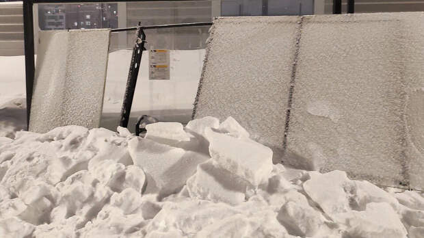 Несчастный случай произошел накануне вечером. Женщина ждала свой автобус, когда ее внезапно придавило кусками пластика и железа, осколками стекла и целой горой снега и льда. Супруг пострадавшей уверен, что его жену спасло чудо. По его словам, вес конструкции вместе с наледью мог достигать двух-трех тонн.