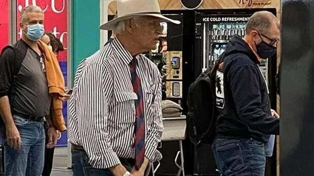 77-летний мужчина летел рейсом авиакомпании Qantas из Канберры в Сидней. Когда экстравагантный мужчина в ковбойской шляпе подошел к стойке регистрации с крупным чемоданом, сотрудница авиакомпании попросила его сдать чемодан в багаж.