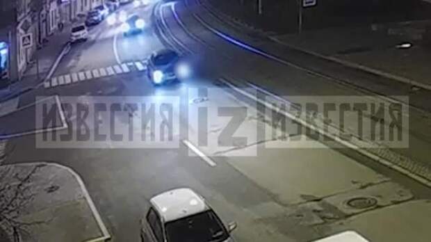 На кадрах видно, как 32-летняя женщина переходит дорогу по зебре. В середине дороги ее на полной скорости сбил "вольво" с дипномерами.