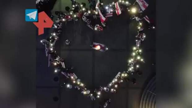 В Сиэтле прошла акция солидарности с протестующими в Белоруссии. Местные жители с бело-красными флагами и зажженными фонариками выстроились в большое сердце.